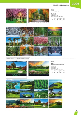 Kalendáře jsou dodávány s průhlednou igelitovou taškou.