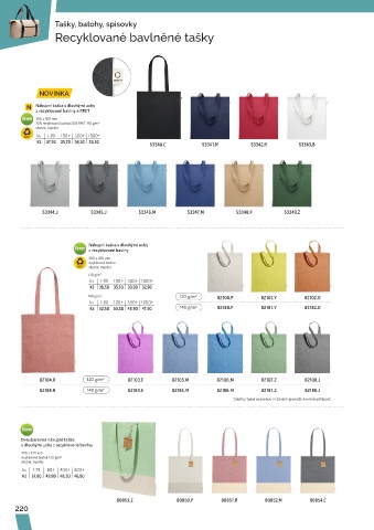Odstíny tašek se mohou v různých gramážích mírně odlišovat.