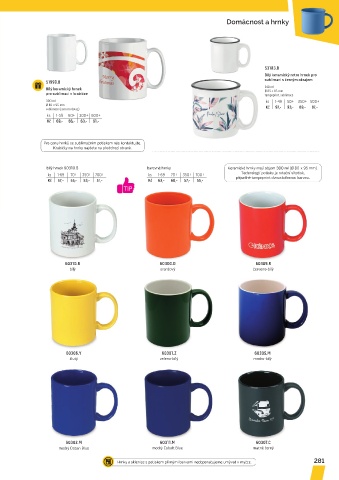 Hrnky a sklenice s potiskem přímými barvami nedoporučujeme umývat v myčce. 281