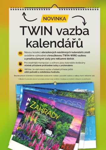 Bezobrázkové víceměsíční kalendáře dodáváme nadále s původní vazbou s velkou horní reklamní laší.