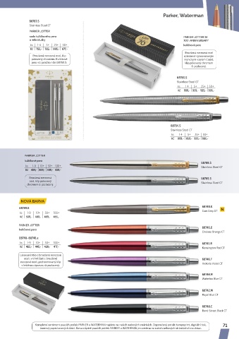 Kompletní sortiment psacích potřeb PARKER a WATERMAN najdete na našich webových stránkách. Doporučený potisk: tampoprint, digitální tisk, 71