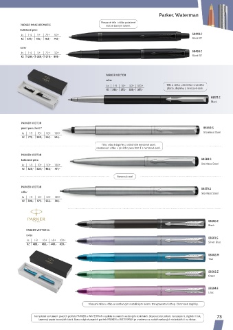 Kompletní sortiment psacích potřeb PARKER a WATERMAN najdete na našich webových stránkách. Doporučený potisk: tampoprint, digitální tisk, 73